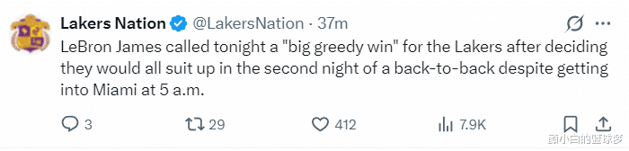 詹姆斯谈到这场收效直言逶迤难得,因为全队是凌晨5点从迈阿密启航的,背靠背第二场赛前决定全员出战。