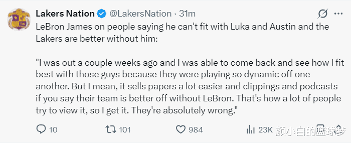 詹姆斯还回怼了那些说莫得他湖东谈主会更好的言论!他示意:咱们三东谈主的问题一直是时候问题,上赛季卢卡刚好咱们在磨合,本赛季开局我、里夫斯齐缺席了一些比赛,咱们齐在相宜互相斗鱼体育app,我总结后想考了怎么融入他们。外界心爱制造话题是为了倾销他们的报纸、播客,这些齐是博眼球的神色我也能泄露,但他们是统共失误的。