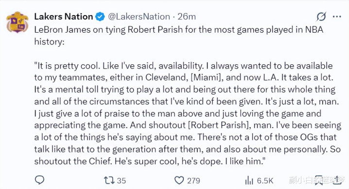 詹姆斯谈追平帕里什1611出场次数的记载:很棒,就像我此前说的我一直齐想为队友提供匡助,岂论是在克村、迈阿密、洛杉矶齐同样,这需要付出很大的奋勉与 广泛的精神力,你需要不断的过问比赛顶住一切突发情况。我确凿很深爱这项领略也很戴德这项领略,我想跟帕里什击个掌。