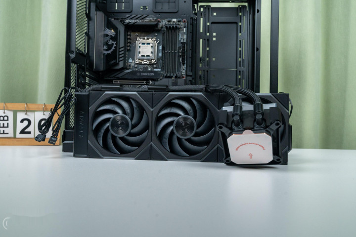 ▼用来压制9850X3D用的是联力的隐流2代一花式水冷方屏版,这款水冷非论是细节野心,一经颜值,亦或是散热性能,发扬均相配棒。