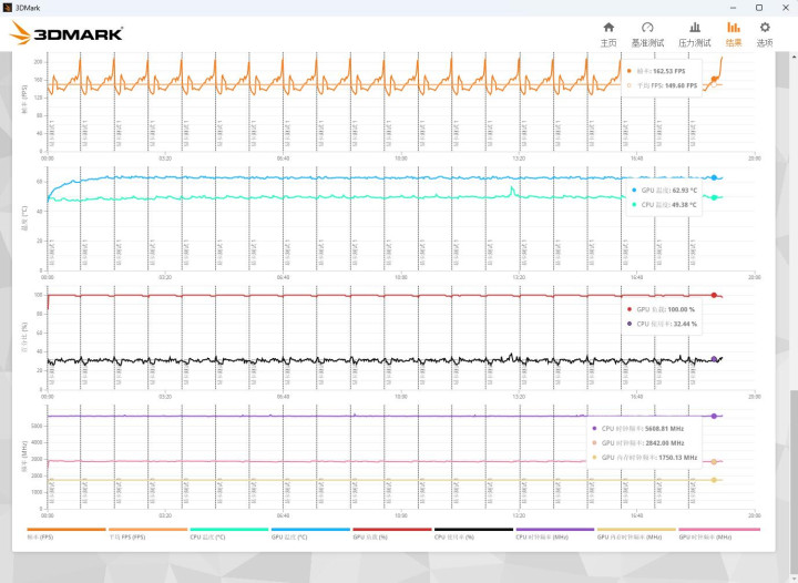▼跑个3Dmark的压力测试,TS模式,帧数踏实率在99.4%,相配踏实。