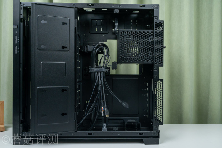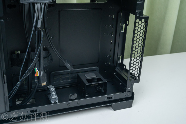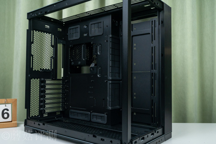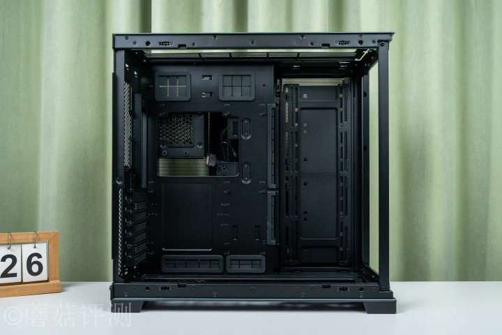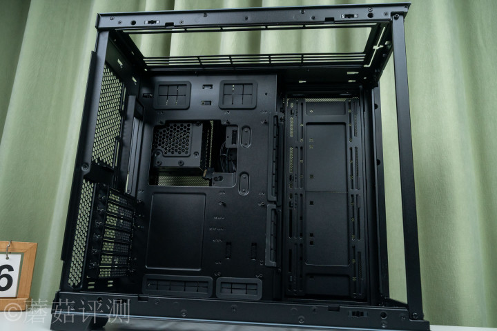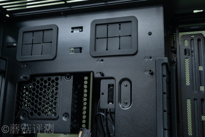▼机箱里面的空间十分规整,左侧是主板固定位,四周有丰富的走线启齿,且均有橡胶防滑套。