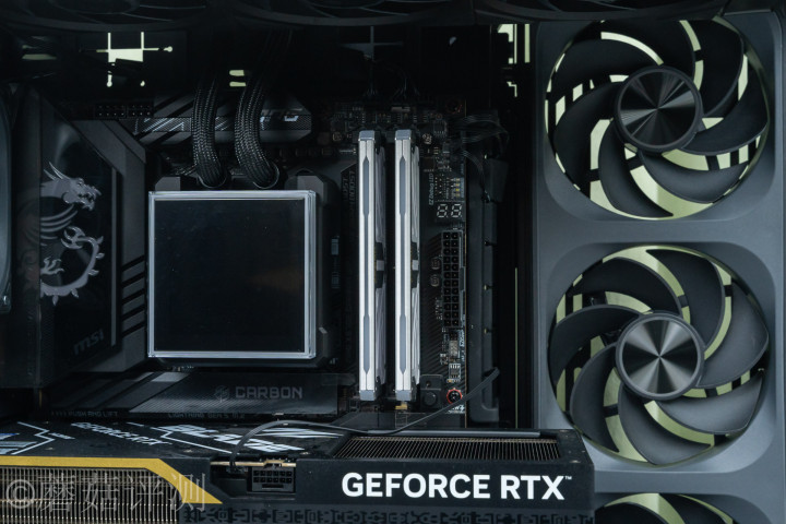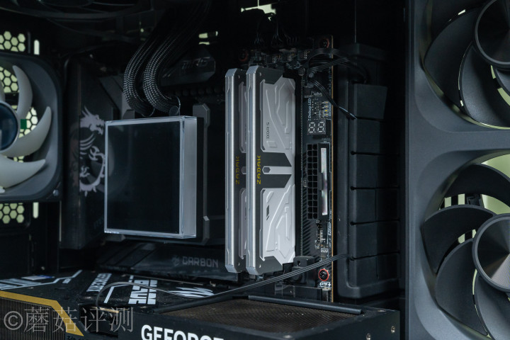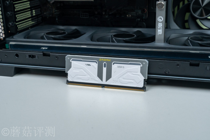 ▼内存用的是宇瞻的ZADAK的SPARK内存,16GB*2 6000MHz,这套内存的金属马甲接收全包式野心,侧面是白色的,烤漆质感,顶部是银色的,拉丝质感。