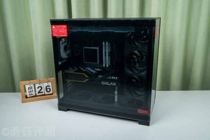 ▼临了盖上机箱侧面、前侧的侧透玻璃,整机装配完成。