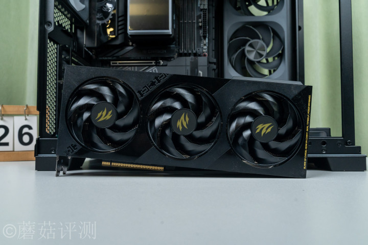 ▼显卡默许水祯祥装,并在显卡的尾部撑一个标配的显卡支架。