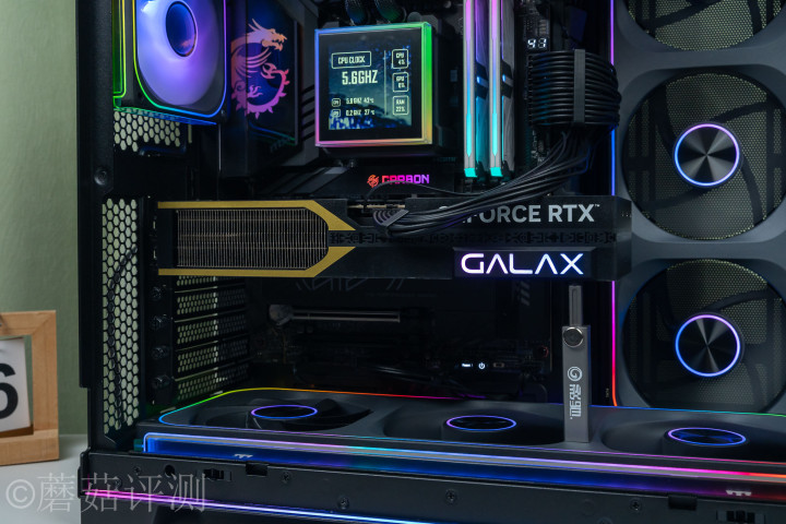 ▼显卡是影驰的RTX 5070魔刃OC,显卡的尾部还有一块磁吸式的灯效小板,可以固定在显卡侧面,也可以固定在显卡的尾部。