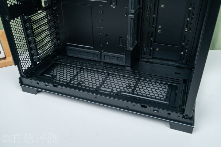 ▼机箱底部,通用有庞杂的机箱电扇位,最大支捏3*140mm规格。