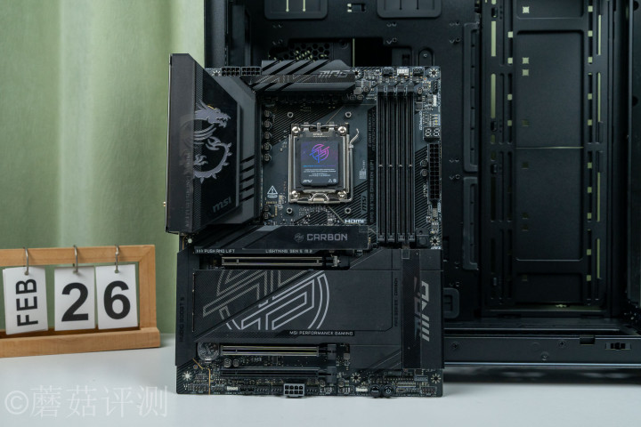 ▼蘑菇这里准备了一套9850X3D搭配RTX 5070显卡的硬件成立,主板是微星的X870E暗黑,这块主板的全体颜值、用料皆相配出色。