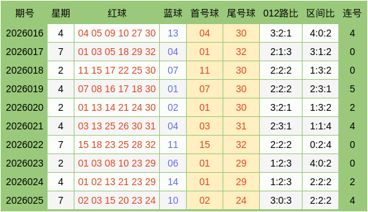 上期追思:双色球2026025期开出奖号:红球02、03、15、20、23、24,蓝球10。