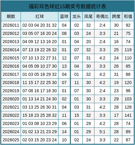双色球第2026025期开出奖号:02、03、15、20、23、24+10。