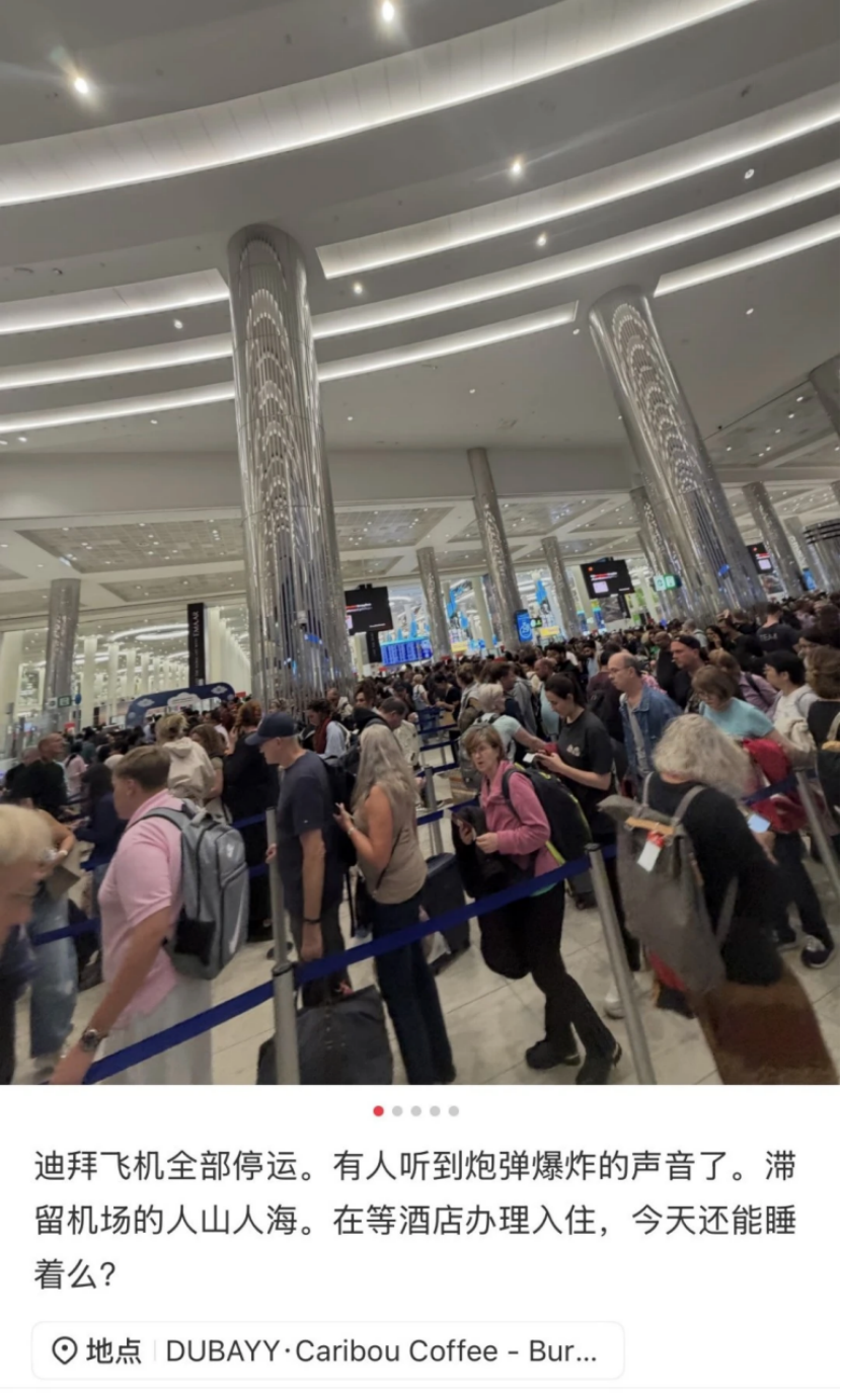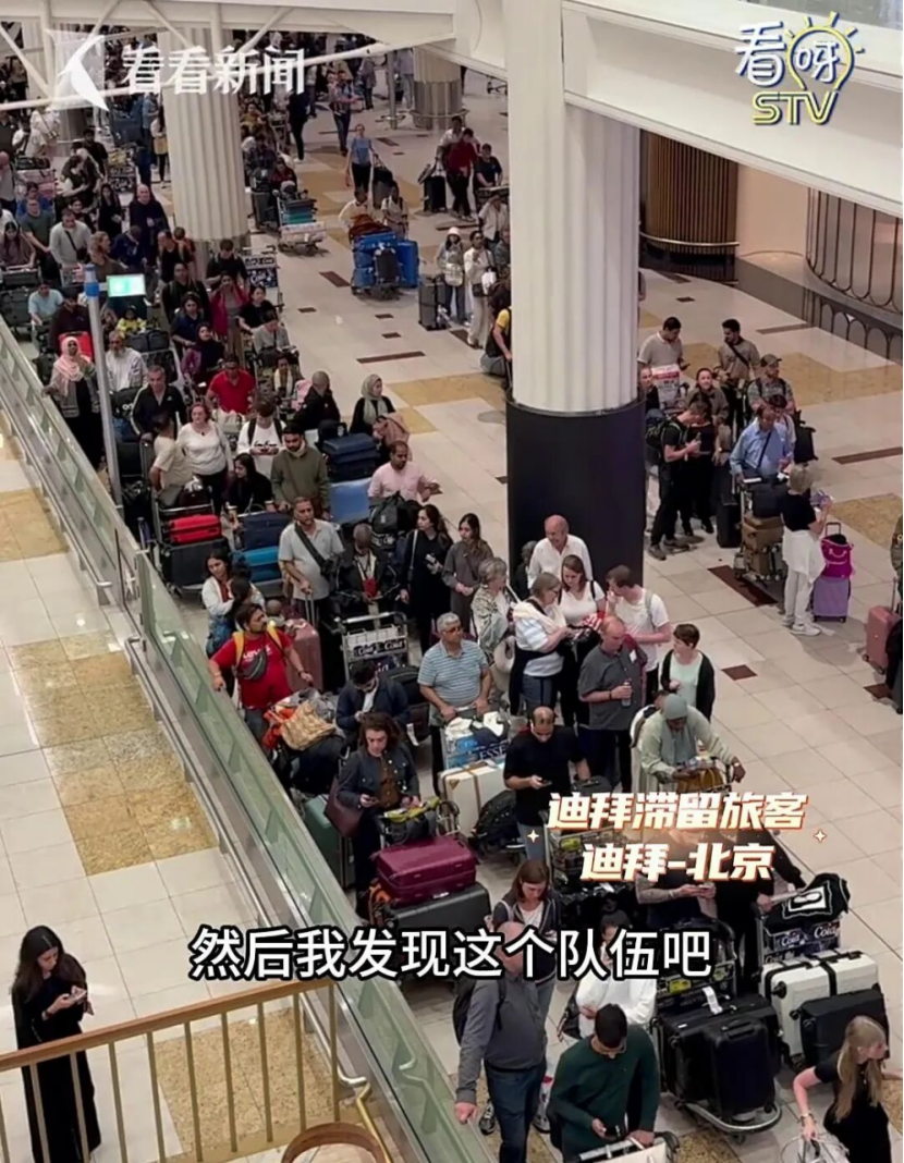 淹留游客:当地3月1日凌晨阿联酋航空飞北京,从迪拜飞北京,机场不让我进,说所有这个词航班取消,我当今不知说念该如何办,我刚才去就业台隔壁问改签,然后有安保跟我讲,让我排一个队,然后我发现这个戎行得有1000东说念主了吧,排了有好几百米长,我给阿联酋航空打电话,打欠亨。