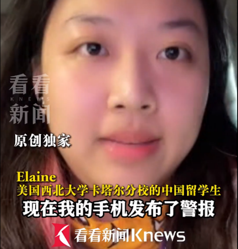 的中国留学生Elaine在直播连线中